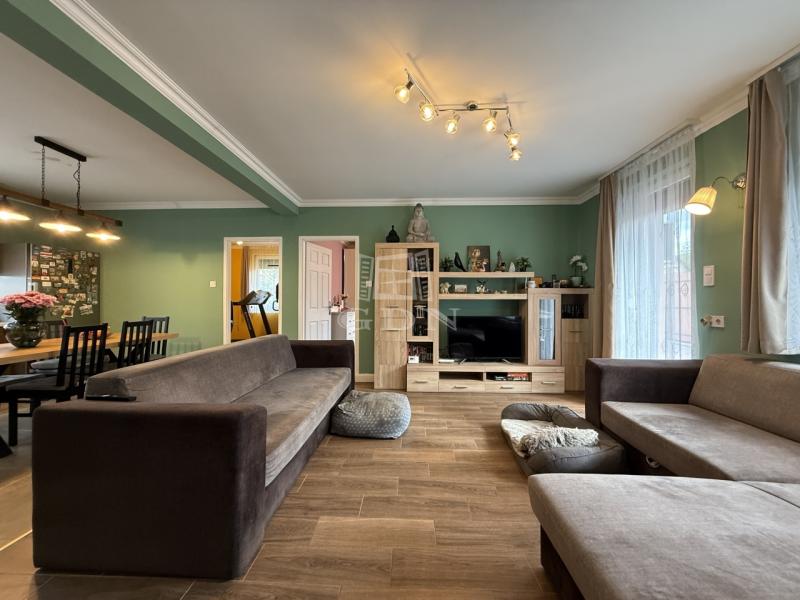 Isaszeg egyik legcsendesebb zsákutcájában, a Szent Erzsébet utcában, új építésű házak között, eladó egy nettó 95 m²-es, három szoba + amerikai konyhás nappalis ikerházfél 28 m² terasszal, 527 m²-es, kizárólagos használatú telekrésszel.