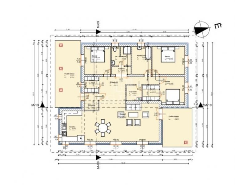 A ház egyedi hanhulatáról a 100nm-es fedett terasz(+ 60nm nem fedett) gondoskodik, ami remek kikapcsolódást bíztosít tavasztól késő őszig a család minden tagjának!
