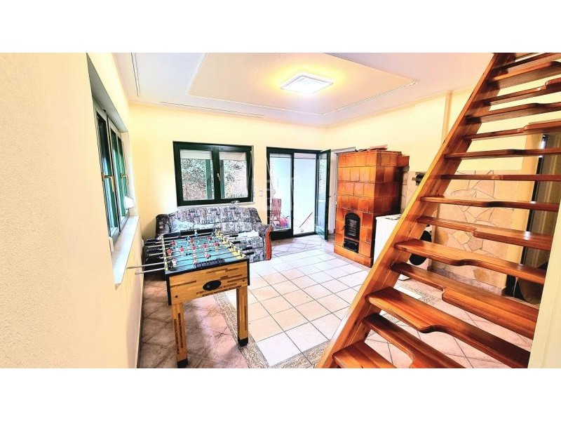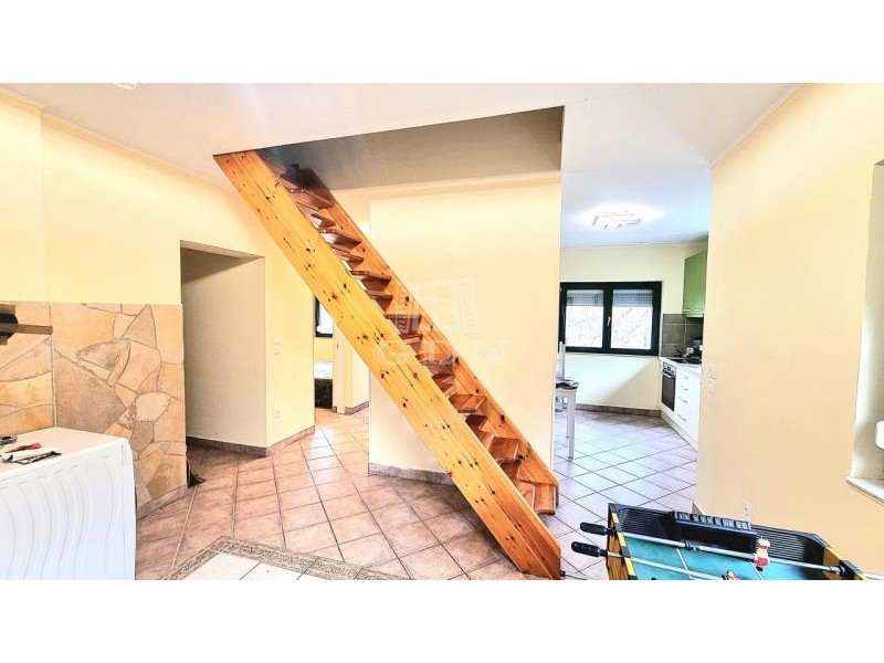A ház alsó szintjén egy teraszkapcsolatos nappali, 2 szoba, konyha, fürdő, toalett, a felső szinten 2 hálószoba lett kialakítva.