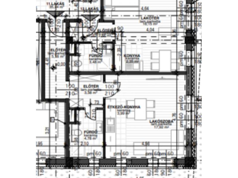 A lakás 35,24 nm, helyiségei:előtér 5,18 nm, fürdőszoba 4,78 nm, előtér 3,38 nm, étkező/konyha 5,61 nm, nappali/lakószoba 16,29 nm.