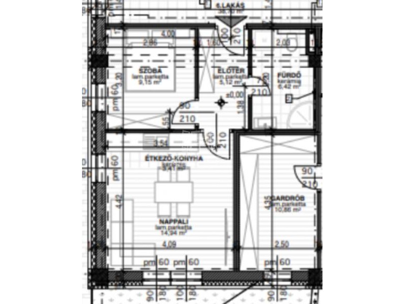 A feltüntetett ár földszint 6-os lakásra vonatkozik, 38,70 m2 lakótér, helyiségei: amerikai konyhás nappali, szoba, előtér, fürdőszoba.