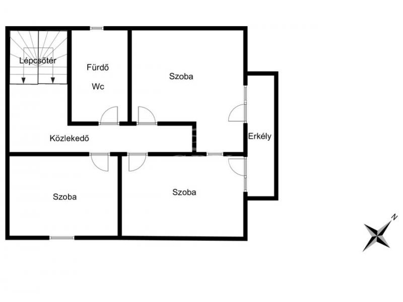 Elrendezés: nappali + 3 hálószoba