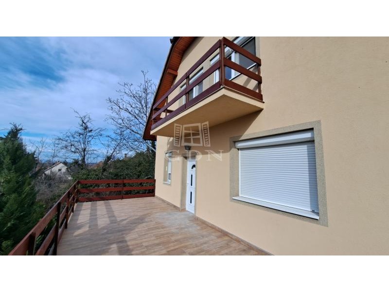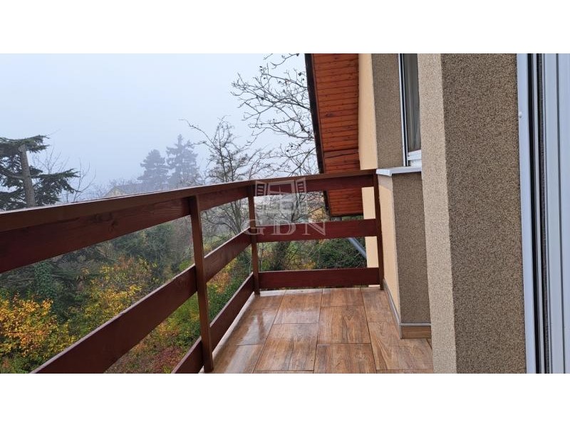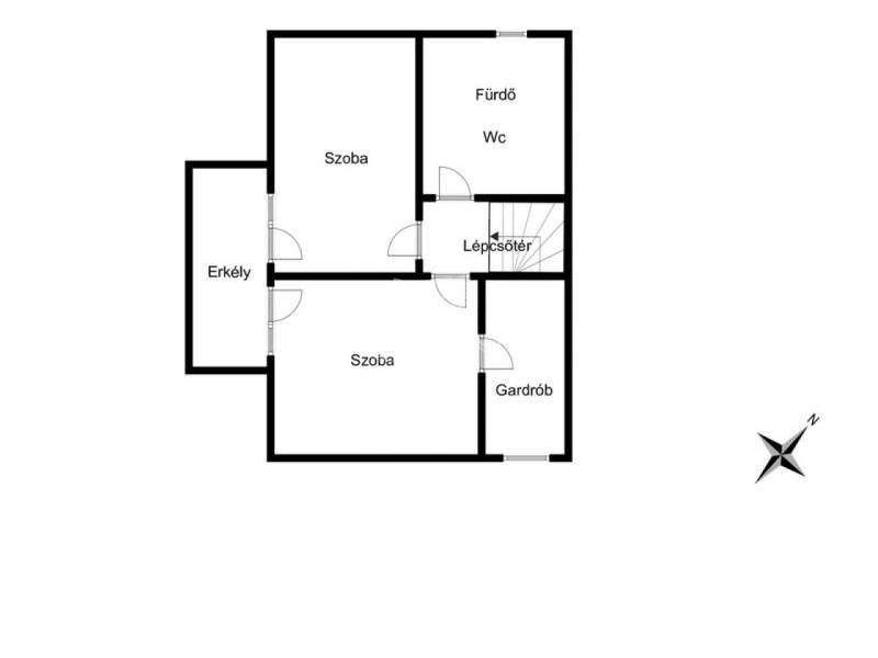 Az emelet két hálószobát, egy gardróbszobát, fürdőszobát és egy erkélyt kínál.