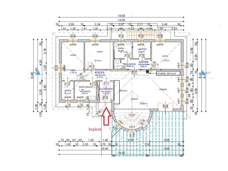 Az épület kiváló minőségű, 30 cm-es Porotherm főfalakból készült, melyet 15 cm-es külső hőszigetelő rendszer borít garantálva az alacsony rezsit, a tetőt antracit színű betoncserép fedi.