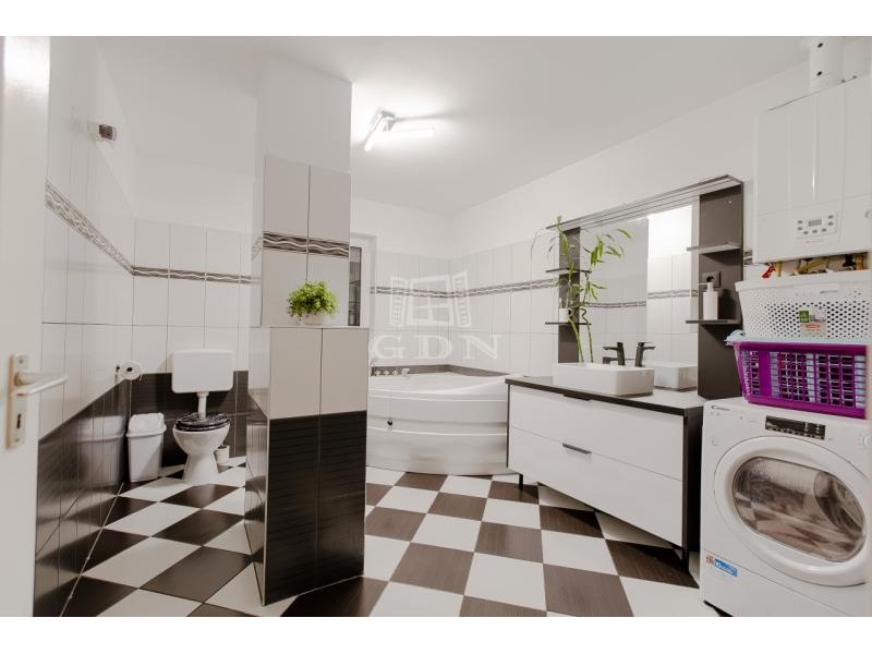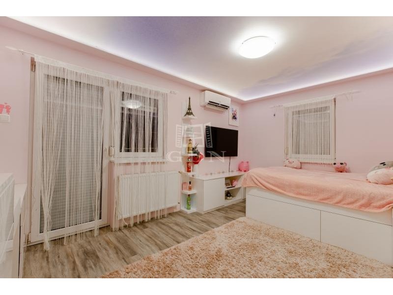 Az épület 2006-ban épült beton alapra tégla falazattal, beton födémmel, szomszéd felé dupla falazattal, és betoncserép fedéssel. A falazat körbe 8 cm dryvit szigetelést, thermo műanyag nyílászárót (redőnnyel és rovarhálóval), kondenzációs gázkazánt, és helységenként inverteres hűtő-fűtő klímát kapott. Nappaliban elhelyezésre került egy kandalló, a lakás biztonságáért pedig távfelügyeletes riasztó felel. A minimális költségekért pedig felhelyeztek 7 kw napelem rendszert ami Szaldó elszámolással rendelkezik. Udvara környezete tiszta rendezett, egy autó számára fűtött garázs áll rendelkezésünkre, két autónak pedig felszíni beálló. Az udvar szépségéért automata öntözőrendszer felel. Hátul található egy kellemes hangulatot árasztó 18 nm-es fedett terasz, mellette pedig egy 8 nm-es szerszám tároló található.