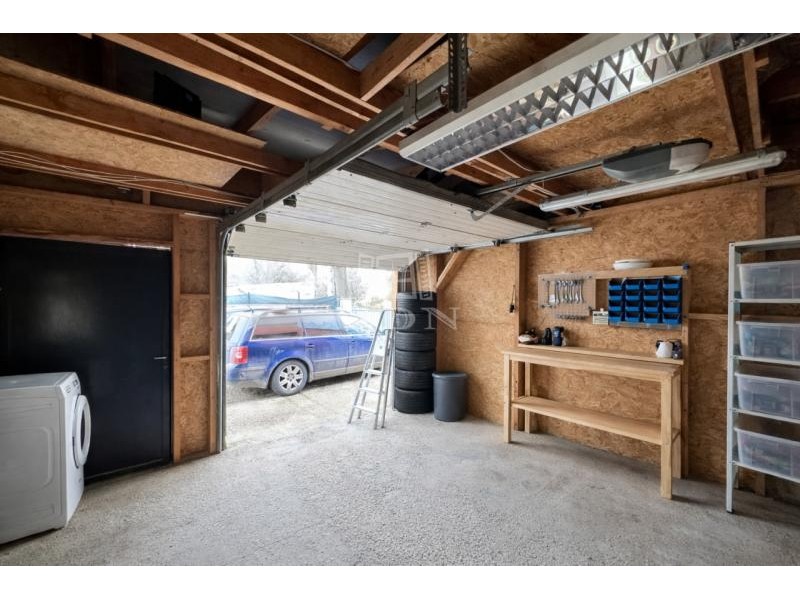 Elöl az udvarban garázs (műhelynek is alkalmas), és tároló is található.