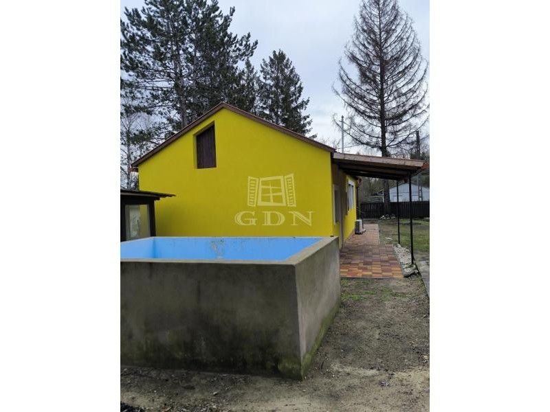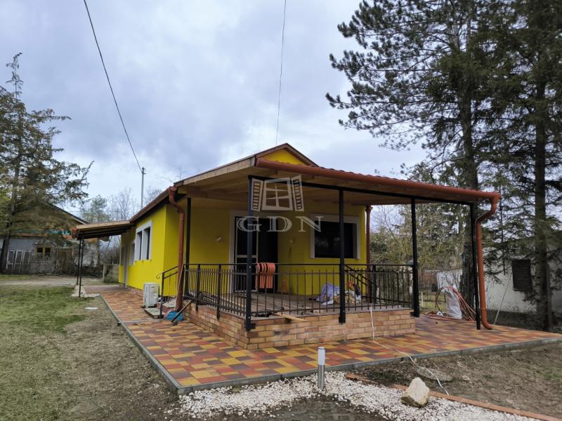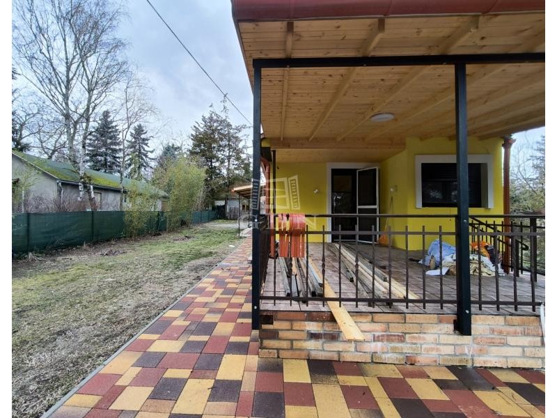 Pócsmegyer Surány II részén eladó felújított, fa szerkezetű, 56 nm-es (+8 nm-es tároló, + 16 nm-es fedett terasz, + épített medence) ház, 514 nm-es telken.