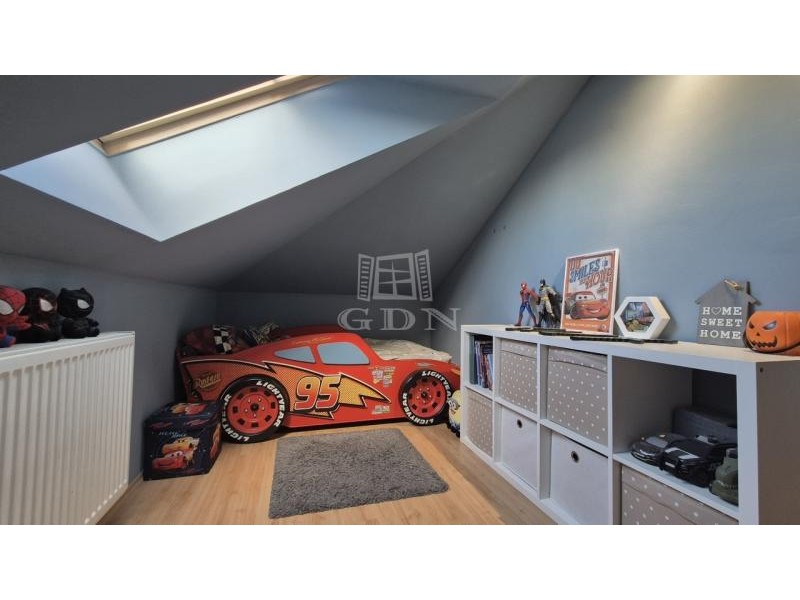 A gyerekszoba és a gardrób könnyedén egybe nyitható, így egy teljes értékű szoba is kialakítható a jelenlegi két félszoba helyett.