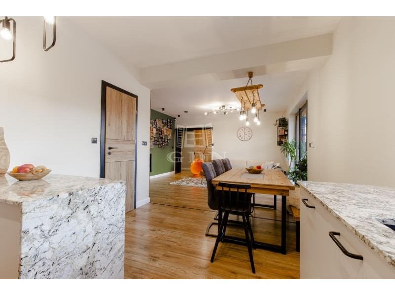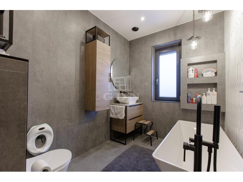 Kényelem és minőség jellemzi az egész házat belülről, prémium anyagok és minőségi egyedi gyártású falburkoló megoldások, gránit pultos praktikus konyhával, melyből a szülő egyaránt rá lát az udvarra és a nappaliban játszó gyermekekre is. A dupla fürdőszoba lehetőséget ad a gyermekeknek a kádas fürdőszobára, illetve a szülői hálószobában lévő fürdőszoba pedig a felnőttek intimitására.
