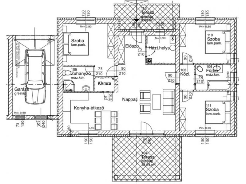 Fűtésről Daikin hőszivattyú gondoskodik az egész házban padlófűtéssel, hűtésről pedig Gree központi klíma gondoskodik helységenként kinti diszkrét befúvókkal. Ezen eszközök gazdaságos működésére 3x25 Amper lett bevezetve a házba, illetve 3 kw-os napelemrendszer táplálja, a garázsban kiépített autós töltővel együtt.