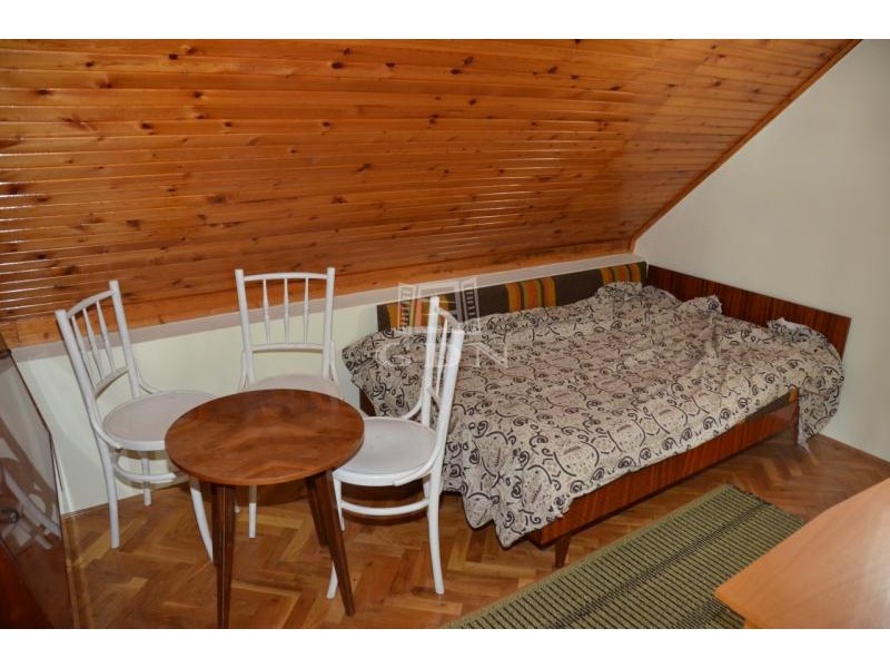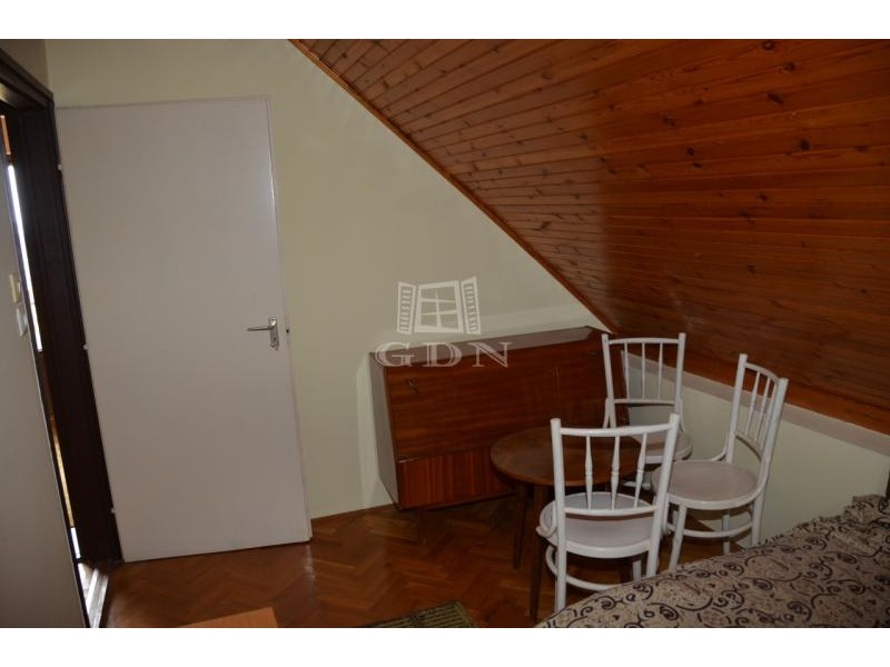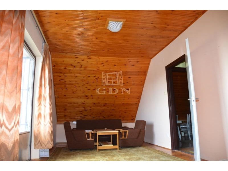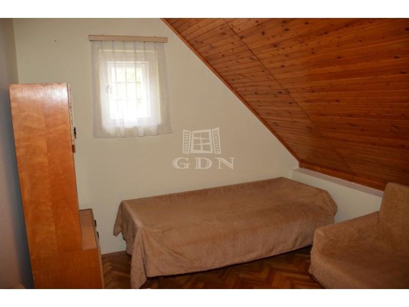 Eladó lakóházzá alakítható hétvégi ház Szentendre egyik legcsendesebb, zöldövezeti részén — Tyúkosdűlő, Bég utcában. Szentendre Tyúkosdűlő részén, a Bég utcában, aszfaltos utcában, csendes, madárcsicsergős, természetközeli környezetben eladó egy lakóházzá alakítható hétvégi ház. Az ingatlan egy 547 m²-es, gondozott, fűvel borított telken helyezkedik el, összközműves (víz, villany, gáz elérhető), kivéve a csatornarendszert, amely az utcában nem kiépített. Főbb jellemzők: Hasznos alapterület: 116 m² Telek területe: 547 m² Építés éve: 1980-as évek Szerkezet: tégla, B30 Tető: palafedés Alap: solymosi kő, betonba rakva Fűtés: földszinten szobánként gázkonvektor, emeleten a gázrendszer kiépített, konvektorok elhelyezhetők Kémény: kandalló bekötésére alkalmas A ház alapbútorzattal eladó. Nyílászárók: fa ablakok, lemez bejárati ajtó, bent tömörfa ajtók Villany: 3 fázis, részben felújítandó Külső felület: kőporos dörzsölés Helyiségek elosztása Alagsor: garázs + tároló Földszint: konyha, étkező, nappali, 2 szoba, fürdő, WC, lépcsőfeljárat (Az egyik szoba akár a fürdő bővítésére is felhasználható.) Emelet: 1 nagy és 2 kisebb szoba lambériázott mennyezettel, az egyik szobából fürdő kialakítható. Padlás: betonfödém Tető: pala Kert és környezet: Az udvar rendezett, árnyas, karbantartott, többféle gyümölcsfával beültetett, és a gyönyörű panoráma még különlegesebbé teszi. A zöldövezeti telek ideális választás azoknak, akik nyugodt, természetközeli környezetben keresnek otthont vagy pihenőhelyet — Szentendre legszebb domboldalán, festői kilátással. Közlekedés és elhelyezkedés: A ház aszfaltos úton közelíthető meg és a bekötő utca is aszfaltos. Buszmegálló: kb. 10 perc gyalog Autóval: 8 perc a HÉV- és buszpályaudvar, 25–30 perc Budapest Duna-part, Papsziget: 10 perc sétával elérhető Élelmiszerbolt, kertvárosi szolgáltatások: kb. 10 perc gyalog Infrastruktúra és szolgáltatások A közelben minden fontos intézmény megtalálható: Háziorvosi és gyermekorvosi rendelők, valamint fogászat a városközpontban Gyógyszertárak és kisebb egészségügyi szolgáltatók (pl. ENDRE-MED gyógyászati segédeszköz bolt) Bevásárlási lehetőségek, helyi boltok és élelmiszerüzletek sétatávolságban A városi egészségügyi infrastruktúra folyamatosan fejlesztés alatt áll, több rendelő megújításra kerül Gyors közlekedési kapcsolat Budapest irányába a 11-es főúton és a HÉV-en keresztül Összegzés: Ez az ingatlan ideális választás mindazok számára, akik: csendes, természetközeli környezetben szeretnének élni, értékelik a jó megközelíthetőséget és a teljes infrastruktúrát, vagy egy lakóházzá alakítható, stabil szerkezetű házban látnak fantáziát. Ne hagyd ki ezt a lehetőséget! Érdeklődj még ma, és győződj meg személyesen is az ingatlan nyújtotta lehetőségekről Szentendre festői Tyúkosdűlő részén!