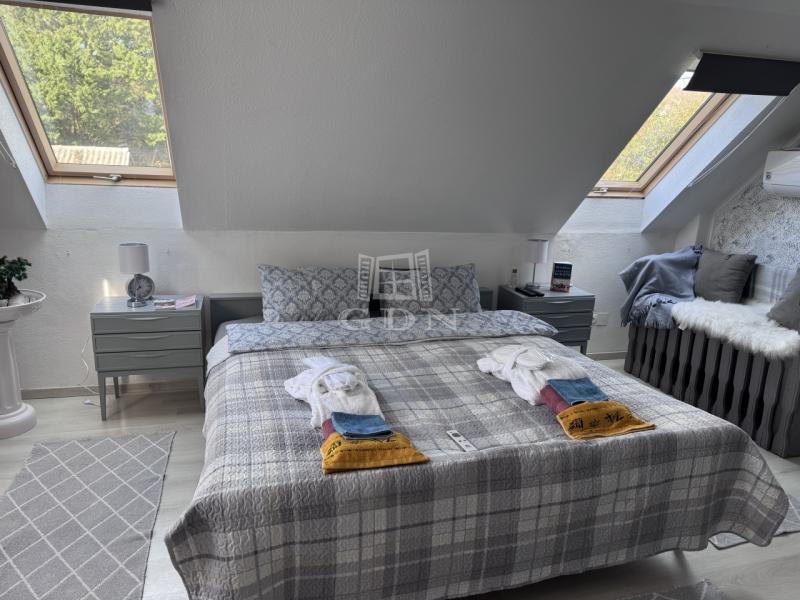 Kiadó nyaraló hangulatú családi ház Szentendrén – Szarvashegyen, a Skanzen közelében A kertből a hegyekre nyíló panoráma minden évszakban más arcát mutatja – de mindig békét és inspirációt ad. Ez a 90 m²-es, tetőteres családi ház igazi harmóniát teremt a természet és a modern élet között. A házban 2 hálószoba, nappali-konyha, sarokkádas fürdőszoba és praktikus tároló található. A telek értékei (1890 m²): • A kertet akár gondozzák is helyetted • Fedett kocsibeálló • Pub stílusú faház – baráti beszélgetésekhez, gyerekeknek kuckó • Fúrt kút és pince – tárolásra (gyümölcs, zöldség) ⚙️ Felszereltség: • Internet, TV (optikai kábel) • Hűtő-fűtő klímák • Sütés-főzés gázpalackról Elhelyezkedés: Szentendre központja 5 perc, HÉV és buszmegálló kb. 10 perc, Budakalász bevásárlóközpont 15 perc, Budapest, Árpád-híd 20 perc. Kinek ajánlom: Annak, aki szereti a természet közelségét, de fontos számára a városi elérhetőség. Annak, aki nem csak lakni akar valahol, hanem feltöltődni is. Családoknak, pároknak, alkotó embereknek – mindenkinek, aki értékeli a csendet, a panorámát és az otthon melegségét. Ez nem csak egy ház – egy otthon, ahol jó megérkezni.