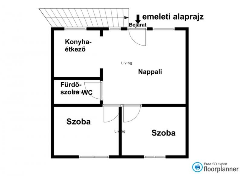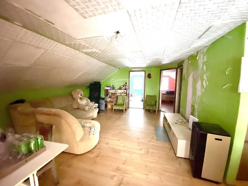 Az ingatlan külön bejárattal rendelkező emeleti lakrésszel rendelkezik, így a két szint teljes mértékben önállóan használható. A földszint alapterülete 110 m², míg az emelet 94 m², mindkét lakrészben konyha-étkező, kamra, nappali és két hálószoba került kialakításra.