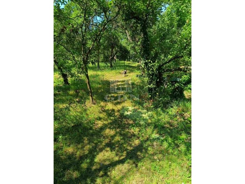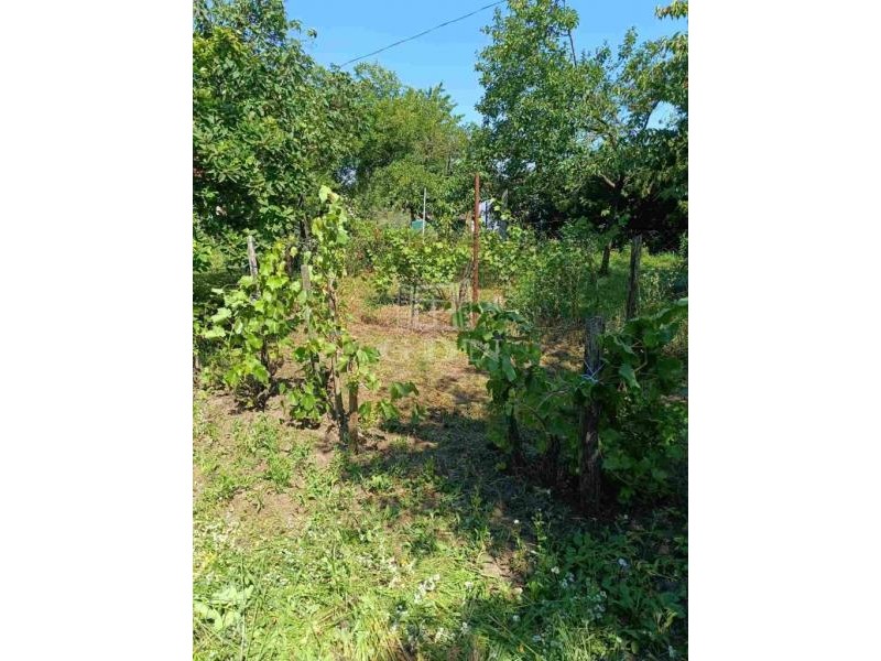 A telek körülkerített, gyümölcsfákkal beültetett.