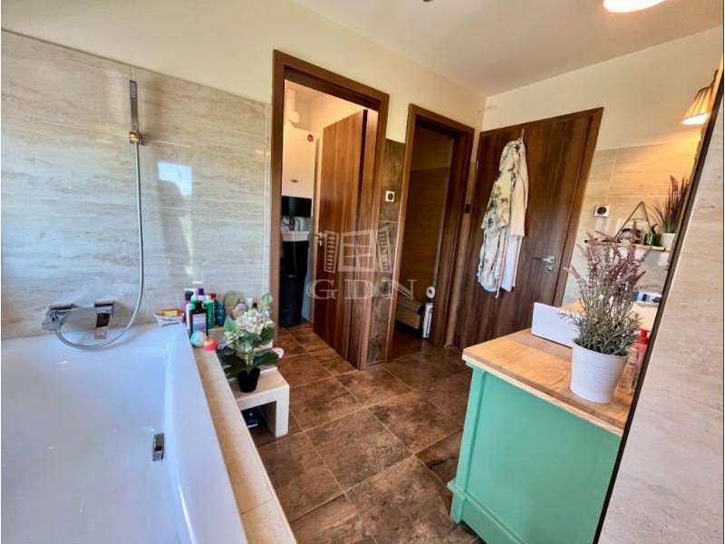 Az otthon melegét WOLF turbó gázkazán biztosítja padlófűtéssel és radiátoros hőleadókkal, a nyílászárók műanyag szerkezetűek az alsó szinten 2, a felső szinten 3 rétegű thermo üvegezettek szúnyoghálóval szereltek.