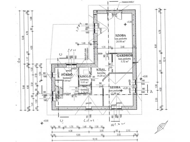 135 nm alapterületű, 2015-ben épült beton sávalapra 38-as Phorotherm téglából, 15 cm homlokzati szigeteléssel, beton födémmel, betoncserép tetővel.