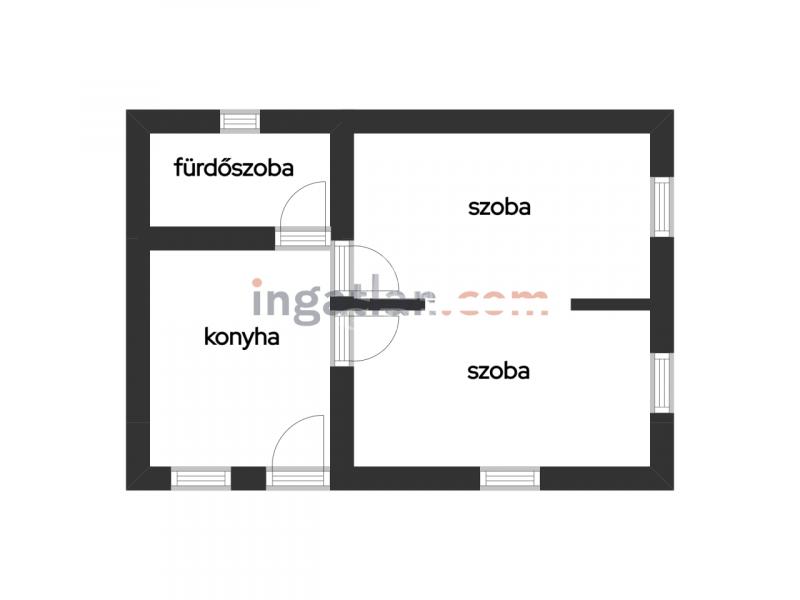 szoba, szoba, konyha-étkező, fürdőszoba-wc;