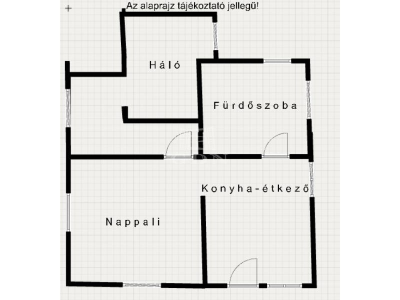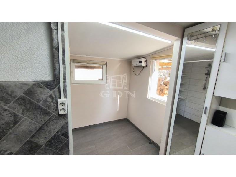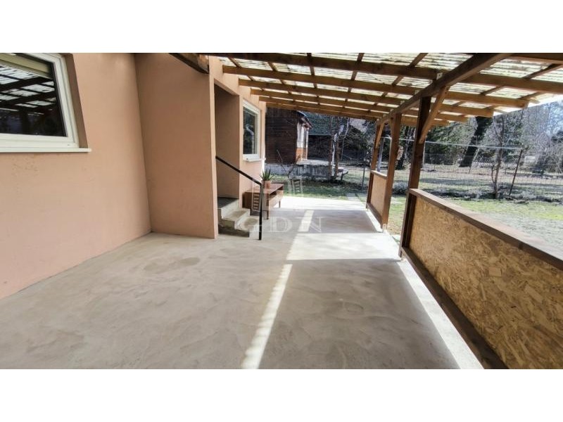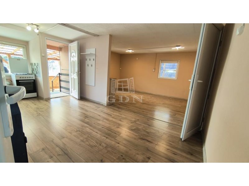 Tágas nappali, konyha, hálószoba, kényelmes fürdő jellemzi. A ház a telek hátsó részén helyezkedik el , így az egész kertre rálátunk. Hatalmas tólókapun kényelmesen be tudunk állni akár több autóval is.