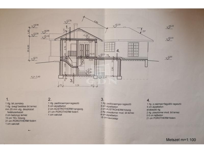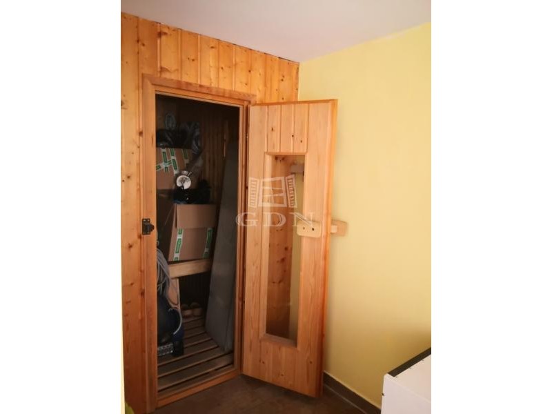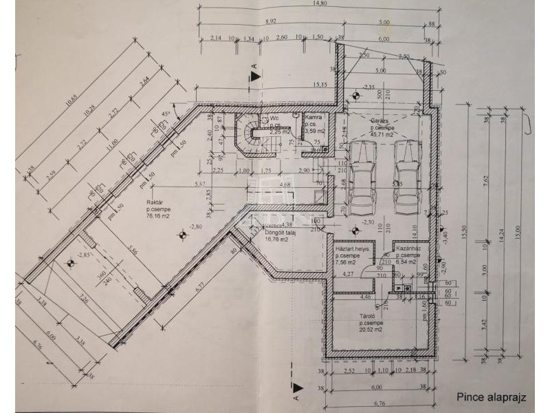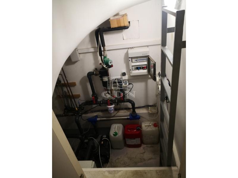 A pinceszinten kapott helyet a kétállásos garázs, a kazánház, a tárolók és a kamra. Innen nyílik az ellenáramoltatóval ellátott, fedett uszoda, a szauna és a borospince is. A ház fűtését és a meleg vizet hőszivattyú biztosítja, de alternatív lehetőségként van vegyes tüzelésű kazán, gáz-cirkó rendszer radiátorral és a nappaliban kandalló, ami nem csak hangulatossá teszi ezt a szintet, de képes az egész ház fűtésére is. Ezen kívül 36 db napelem biztosítja az áramellátást, amely a 200 nm-es műhely tetején helyezkedik el.