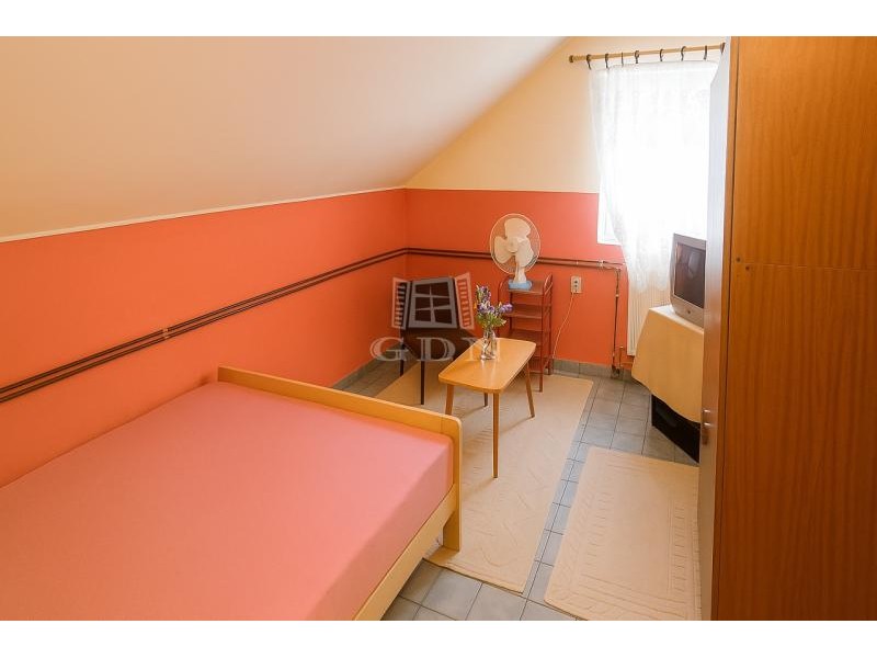 Az emeleten egy nappali, 3 szoba, zuhanyzós fürdőszoba található és egy nagyobb méretű gardrób.