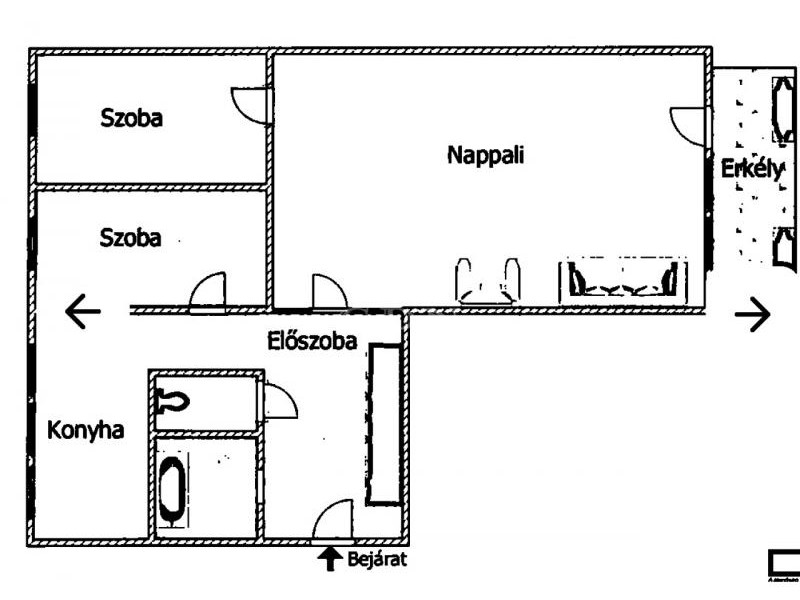 Elosztása: közlekedő/előtér 5,61 m2, nappali szoba 26 m2, félszoba 8,51 m2, félszoba 8,51 m2 konyha/étkező 8,65 m2, fürdőszoba 3,51 m2, toalett 1 m2, erkély 3 m2