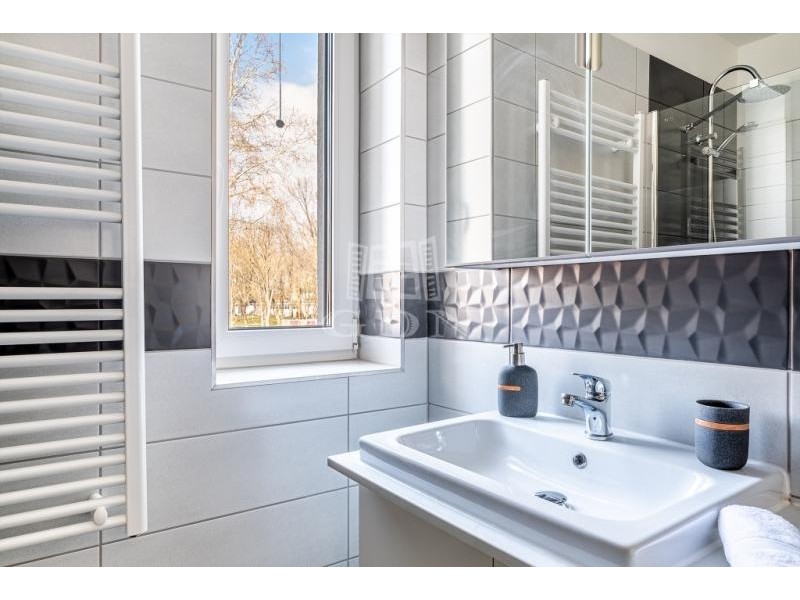 A fürdőszobában és a WC-ben hőszivattyús padlófűtés és elektromos törölközőszárító gondoskodik a komfortérzetről.