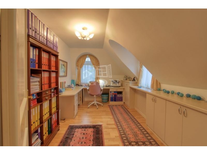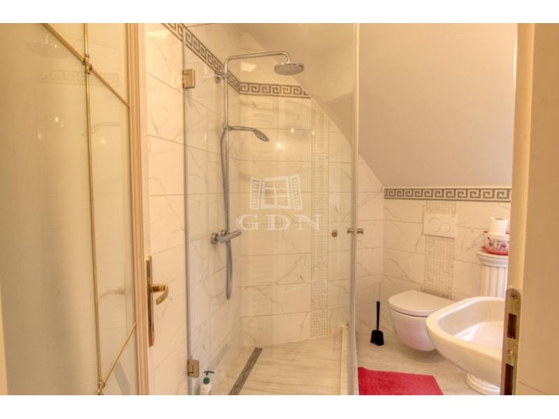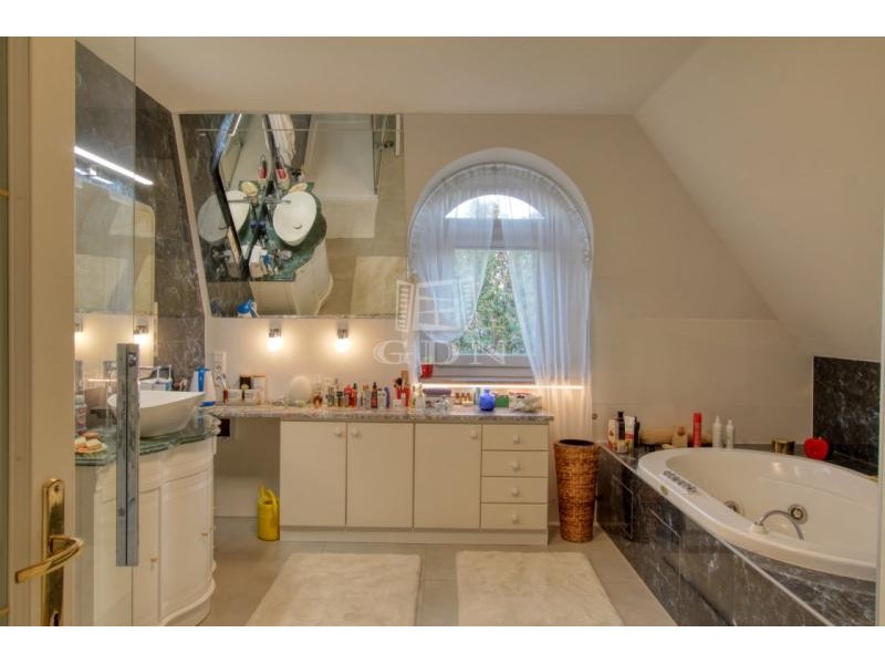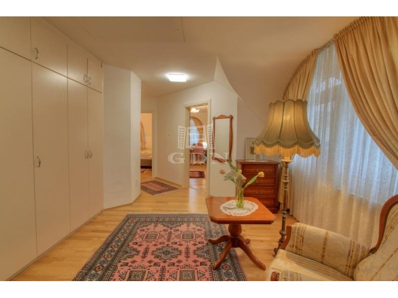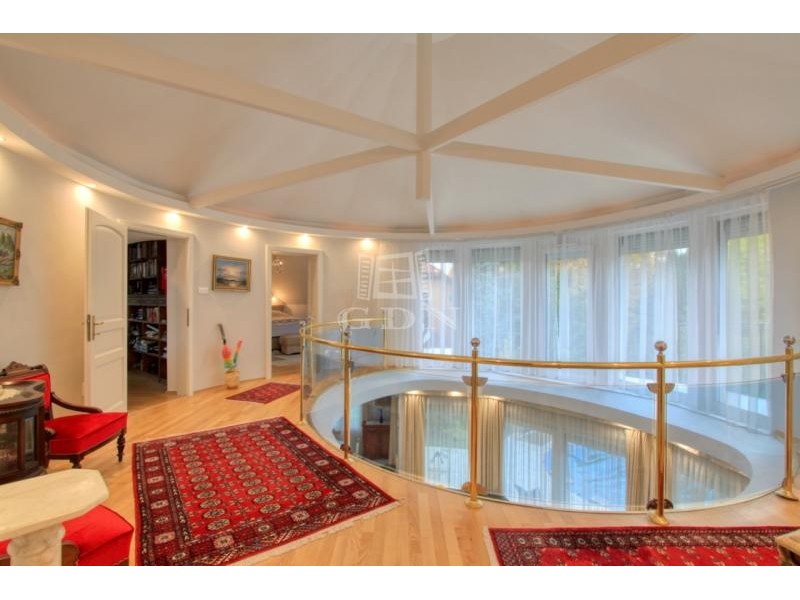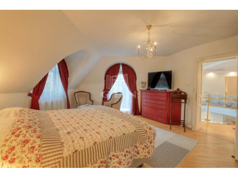 Az emeleti szinten a kör alakú galéria térből juthatunk egy 15 m2-es gardrób szobán keresztül 2 db hálószoba felé (ahol az egyik hálószobához erkély kapcsolat és zuhanyzós fürdőszoba tartozik), illetve a fő hálószoba és dolgozószoba irányába. A fő hálószobából tágas, walk-in zuhanyzóval, pezsgőfürdős káddal rendelkező fürdőszoba nyílik.