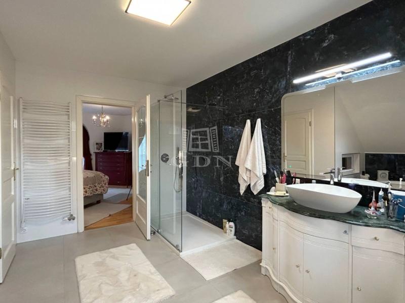 4882. Törökbálint legszebb kertvárosi övezetében a Tükörhegyen, kétlakásos, impozáns enteriőrrel rendelkező, galériás, kiváló állapotú, 7 szobás, riasztóval szerelt, délnyugati fekvésű családi ház garázzsal, hőszivattyús fűtött medencével, parkosított 871 m2-es telken eladó.