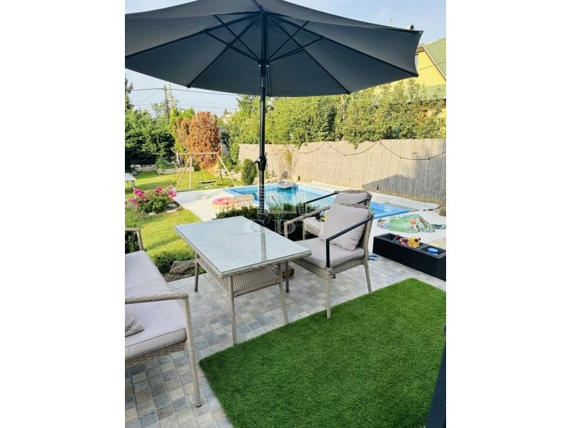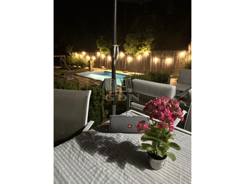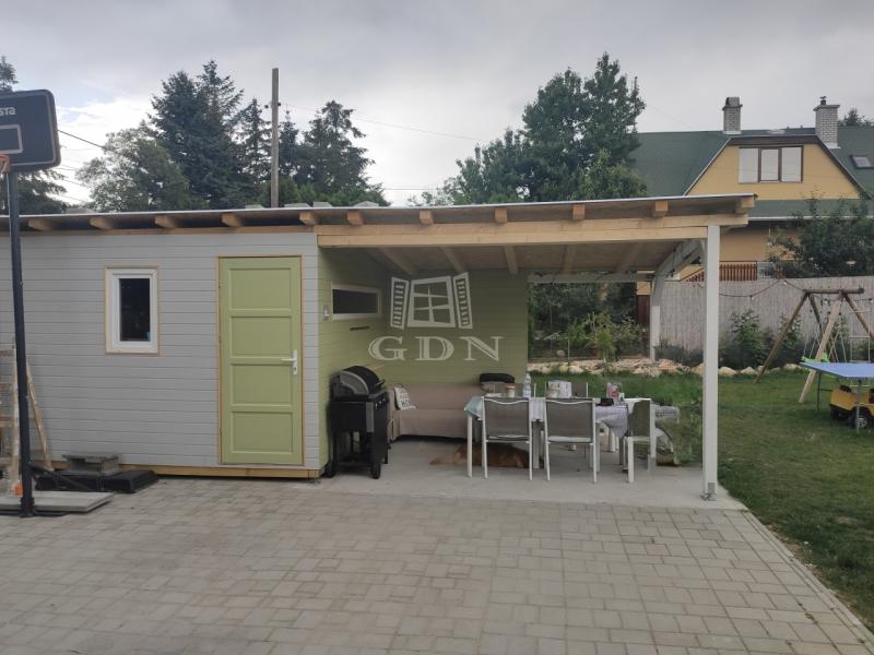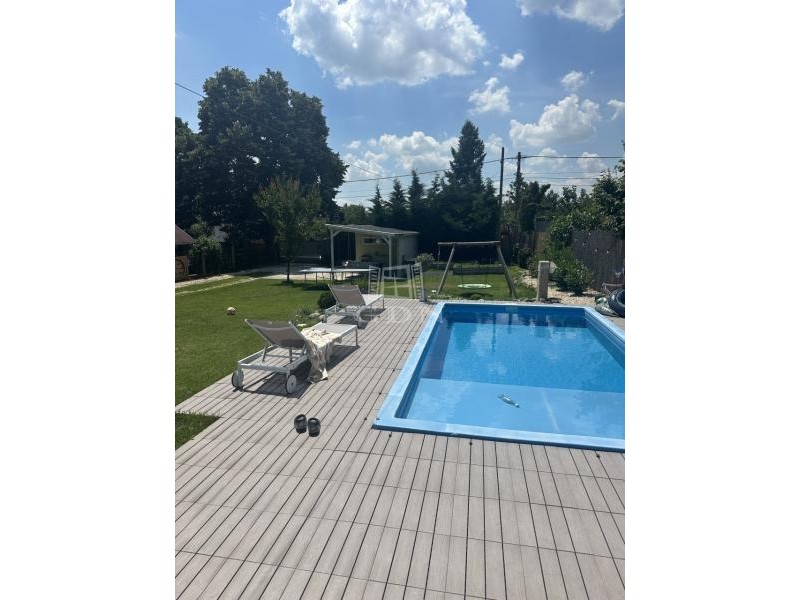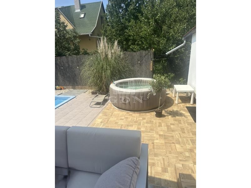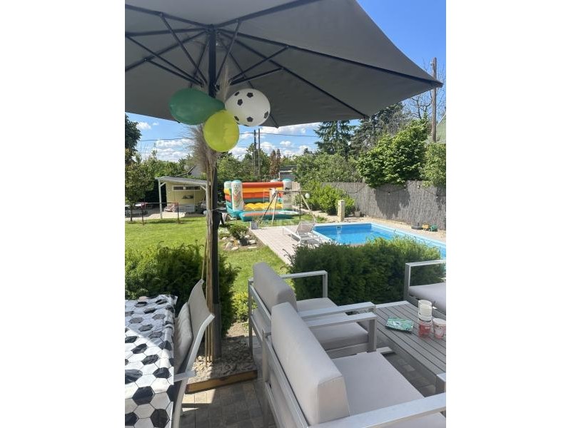 A parkosított kertben egy 6 X 3 méteres vízforgatós medence található. Ezen felűl egy 10 nm - es faház saját terasszal is rendelkezésre áll, amely ideális hobbinak vagy szerszámoknak.