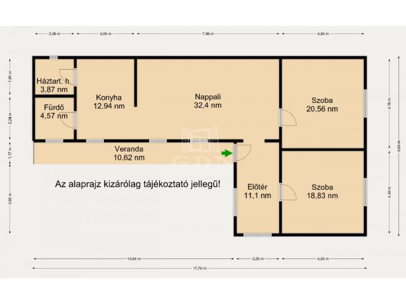 Az épületet kondenzációs gázcirkó, 1 db klíma, 2 szoba, amerikai konyha - nappali, füdőszoba, mosókonyha, valamint egy önálló 20 nm-es tároló jellemzi.