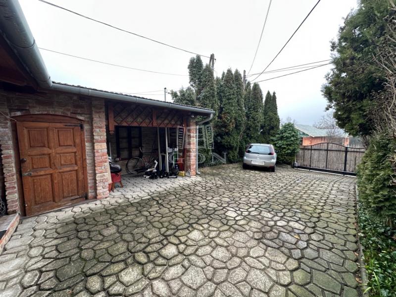 Autónkkal elektromos kapun keresztül állhatunk be a rendezett térkövezett, saját udvarra.
