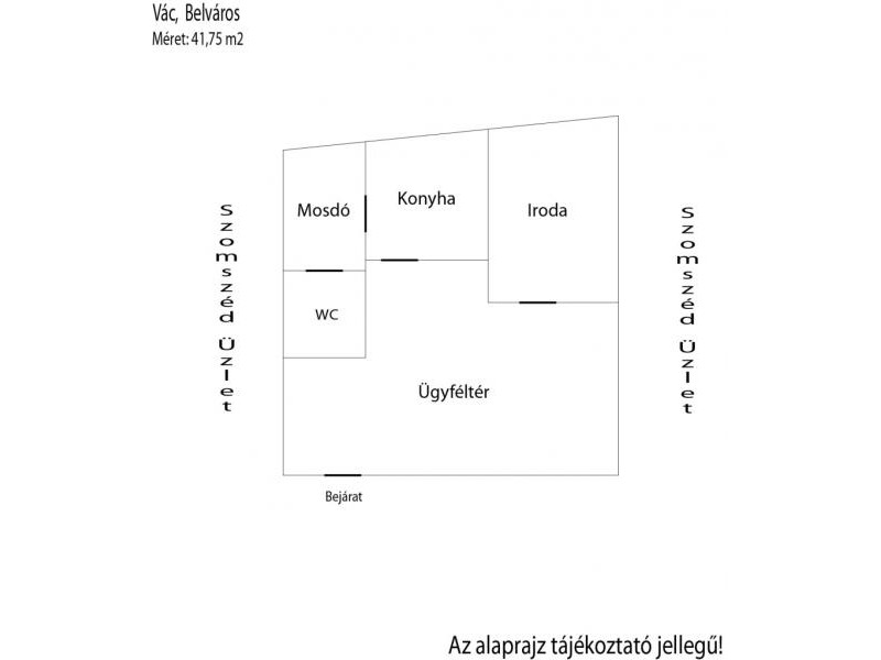 Az ingatlan 41,75 m2-es, klimatizált, saját kis konyhával és szociális helyiséggel, külön mérőórákkal.