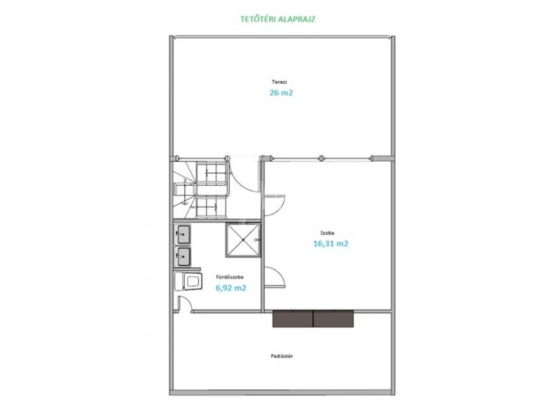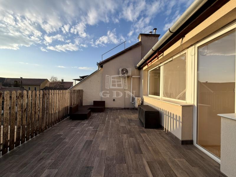 A lakás különlegessége fenti kis előtérből nyíló 26 m2-es, DNy-i tájolású, rendkívüli kilátást biztosító tetőterasz, amelyet tetőtér megnyitásával tudtak megvalósítani.