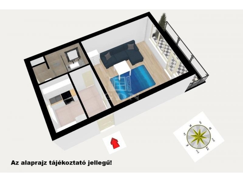 - Fürdő: TÖRÖLKÖZŐSZÁRÍTÓ RADIÁTOR, amely biztosítja a fűtést is.