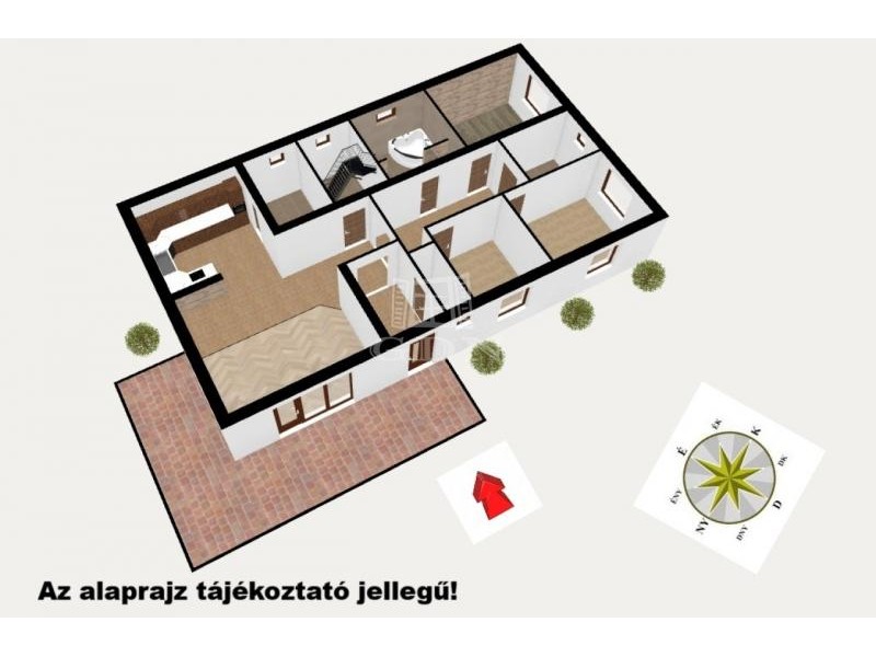 - 2 garázs (3–4 autó) + zártudvari parkoló (5–6 autó)