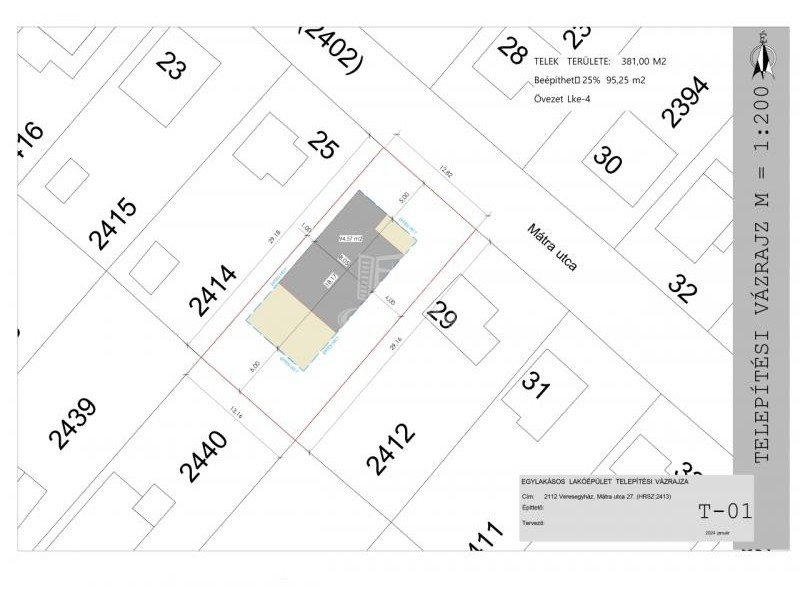Veresegyház egyik legkedveltebb, csendes részén, a Mátra utca 37. szám alatt, 381 m²-es telken kínálunk eladásra egy nettó 122,36 m²-es, önálló családi házat, amely 2 hónapon belül kulcsrakész állapotban kerül átadásra. A házra CSOK Plusz és Otthon Start is igényelhető, a műszaki tartalom pedig igény szerint, rugalmasan választható.