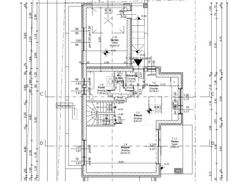Parkolás: saját 36 nm-es dupla garázs, elektromos kapu előkészítés.