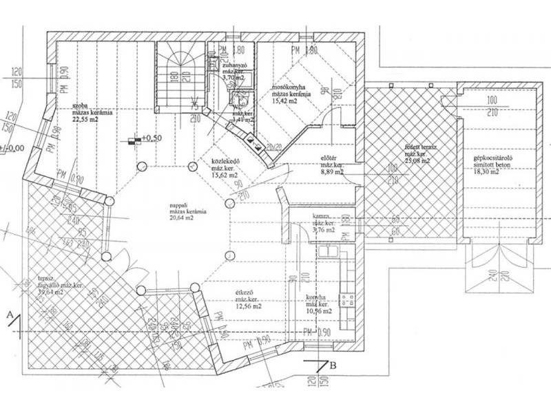 • 6 méteres belmagasságú, különleges kivitelezésű, galériás nappali, kandallóval