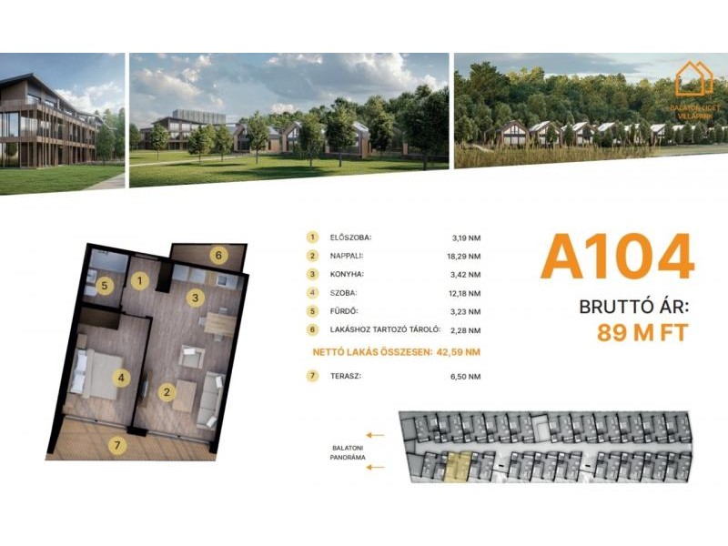Balatonföldvár: Balatonföldvár fontos turisztikai célpont, nemcsak a magyarok, hanem más európai országok turistái számára is, természeti szépségei (például a löszhegy és a nagy virágos parkok), továbbá történelmi örökségei (például a kelta ösvény, a régi kúriák és villák) miatt számtalan szabadidős lehetőséget, valamint számos vízi sportot (vitorlázás, szörfözés, horgászat, evezés) Balaton liget willapark: Lakások száma: 56 db. Alapterület: 28-56 m². A földszinti lakásokhoz saját, privát kert tartozik. A földszinten 21 lakás található, 48–110 m² közötti alapterülettel. Az első emeleten további 21 lakás érhető el, 47–75 m² közötti méretben. A második emeleten 17 lakás kapott helyet. A lakásokhoz önálló tárolóhelyiségek tartoznak, amelyek a közös folyosóról közelíthetők meg. Környezettudatos építő anyagok A+ energetikai besorolás Felszíni parkoló: 6.350.000. Ft. Modern letisztult építészet, tömegformálás, Balatonra tájolt panorámás teraszok. Apartmanlakás - alapfelszereltség: 100% tömör CLT Ausztriából. 20 cm kőzetgyapot hőszigetelés. Fa hőszigetelő nyílászárók 3 rétegű üvegezéssel,tölgyfurnér melegburkolat. Porcelán greslap hidegburkolat, villeroy fürdőszoba szaniterek padlófűtés. Levegős hőszivattyú (VRV splitklíma), 50kW társasházi napelemrendszer, elektromos redőny, szúnyogháló beépített bútorok saját terasz. A 104. lakás. Kedvező fizetési konstrukció: 10-90 %. A további kérdésekkel és a megtekintéssel kapcsolatban kérem keressen a megadott mobil számon.