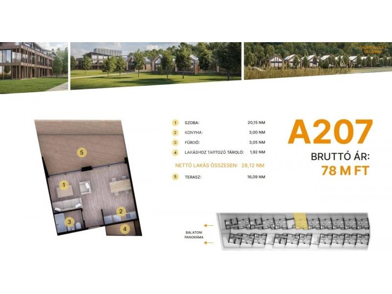 Modern letisztult építészet, tömegformálás, Balatonra tájolt panorámás teraszok.