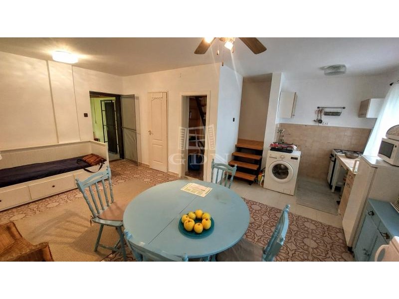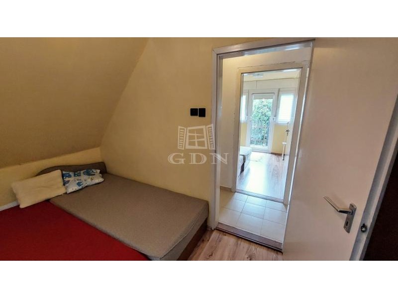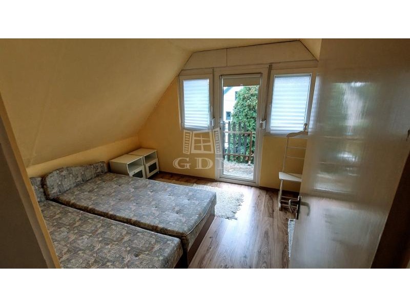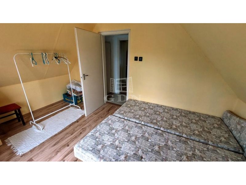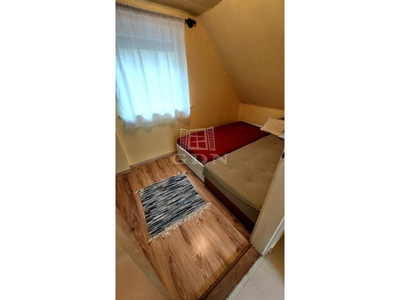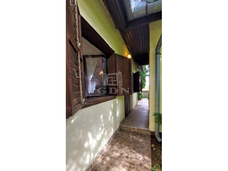 A téglából épült 59 m2-es házat örökzöldek veszik körül bájos, romantikus környezetet teremtve. A szép, rendezett kertben a tuják mellett számos gyümölcsfát is találunk. A nagy, fedett terasz összeköti a kertet és a házat, kiváló helyszín családi, baráti összejövetelkhez. Innen nyílik az egy légterű nappali-konyha-étkező, ahonnan nyílik a fürdőszoba és innen lehet felmenni a két fenti hálóhoz.