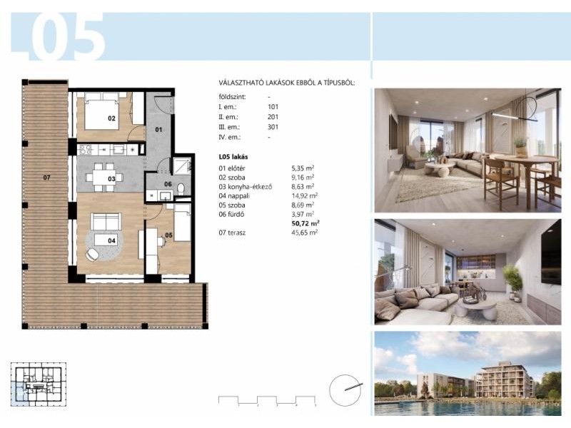 50 nm-es, 3 szobás, 45 nm-es terasszal, elismert szakmai háttérrel rendelkező tervezőiroda által megálmodott lakás, kulcsrakész, 2026 márciusban történő átadással eladó.