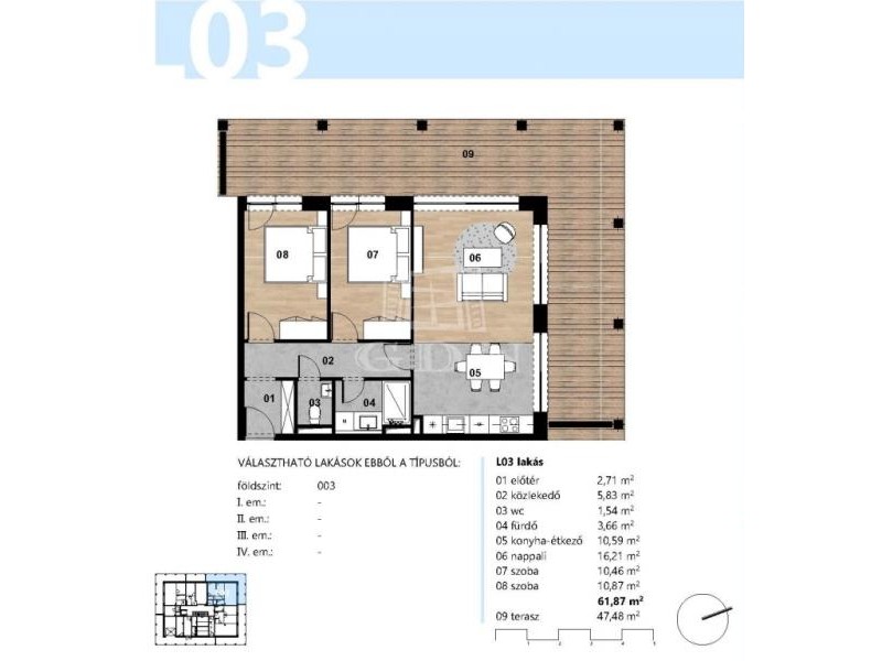 62 nm-es, 3 szobás, 47 nm-es terasszal, elismert szakmai háttérrel rendelkező tervezőiroda által megálmodott lakás, fűtéskész, 2026-ban történő átadással eladó.