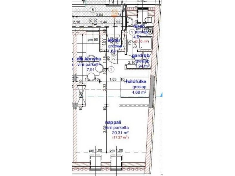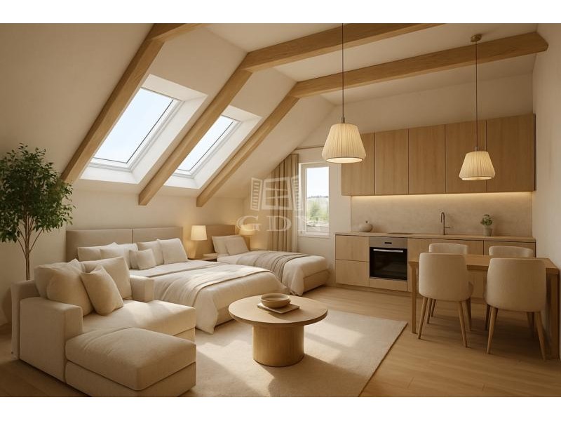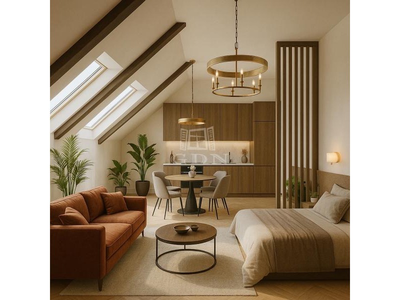 A lakás a tervek alapján amerikai konyhás nappali, hálófülke, fürdőszoba, gardrób és előtér térfelosztású, azonban igény esetén egy további szoba is kialakítható.