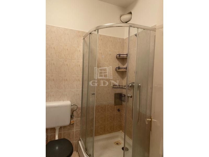 Helytakarékos megoldással a fürdőben zuhanykabin került beépítésre, növelve így a tér és komfort érzetet.
