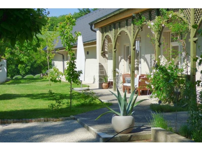Mediterrán életérzés hagyományos vályogházban, levendulamezővel Délnyugat-Magyarország lankás dombjai között, Karád községben kínáljuk megvételre ezt a szeretettel felújított, 150 éves magyar parasztházat. A 2316 m²-es, tágas telken saját, kb. 1000 m²-es levendulamező található, ahol a hagyomány és a modern lakókomfort igazán különleges egységet alkot. A ház összesen 190 m² lakóterülettel rendelkezik, amely két különálló lakóegységre oszlik. A fő lakrész (kb. 130 m²) 4 szobából, egy tágas lakókonyhából, 2 fürdőszobából és egy háztartási helyiségből áll. A második lakóegység (kb. 60 m²) egy loft jellegű, nyitott tér, hálórésszel, káddal felszerelt fürdőszobával és külön bejárattal. A fedett teraszról csodálatos kilátás nyílik a saját levendulamezőre. Mindkét lakóegység átgondolt fűtési rendszerrel rendelkezik: gázfűtés, fatüzelésű kályhák, elektromos fali- és padlófűtés, valamint a második lakrészben inverteres klíma is biztosítja a kényelmet. A hagyományos vályogépítésnek köszönhetően az ingatlan nyáron is kellemesen hűvös marad. Külön értéke az alacsony fenntartású kert, amelyben idős és fiatal gyümölcsfák találhatók, valamint egy automata GARDENA öntözőrendszer gondoskodik a növényzet vízellátásáról. A műszaki felszereltség része egy zárható fedett beálló, továbbá 3–4 további kültéri parkolóhely, saját kút nagy teljesítményű szivattyúval a kert öntözéséhez, modern vízszűrő rendszer, valamint 1 Gb/s sebességű optikai internet és korszerű riasztórendszer kamerás megfigyeléssel, applikációs táveléréssel. Karád kiváló infrastruktúrával rendelkezik: üzletek, éttermek, gyógyszertár, óvoda, iskola, posta, rendezvények és erős közösségi élet jellemzi. Az ismert igali termálfürdő mindössze 20 perc alatt, Hévíz pedig körülbelül 45 perc alatt elérhető. Az új M67-es autópálya-kapcsolatnak köszönhetően a környék kiválóan megközelíthető.