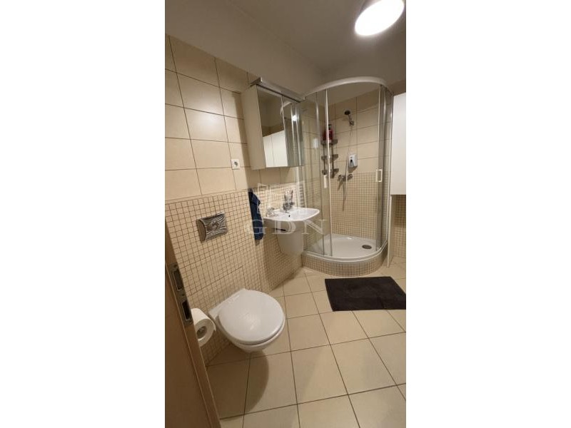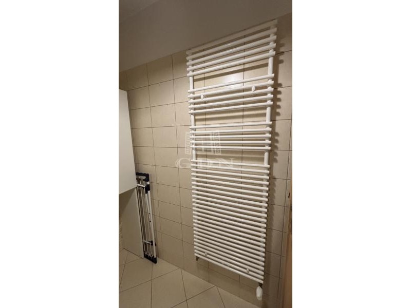 Előszobában előszoba fal, fürdőszobában törölközőszárító, mosdó, vécé, tusoló található.