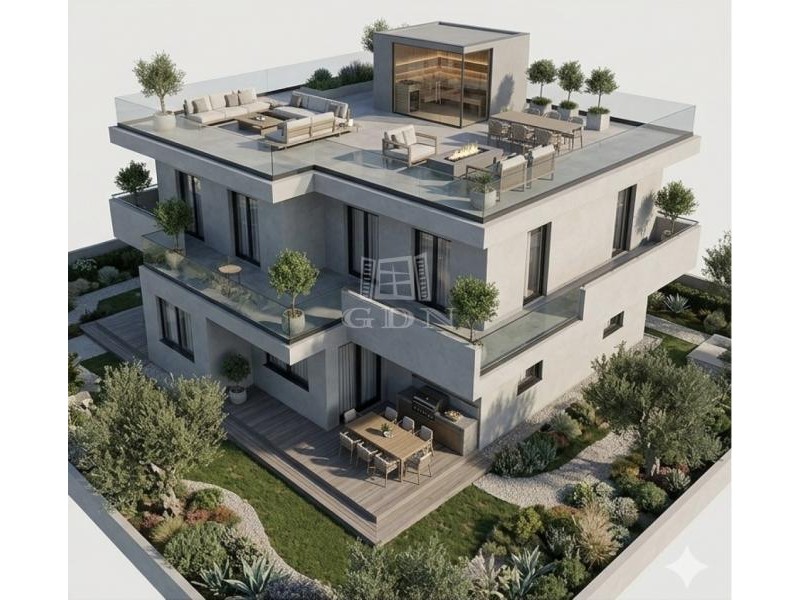 Alapterülete: nettó 115 nm + teraszok 43 nm + saját kertrész 436 nm.