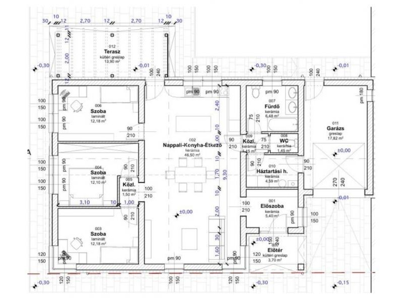 Az új építésű családi ház várhatóan 8 hónapon belül kerül átadásra, mely korszerű hő takarékos építészeti megoldásokat alkalmazva készül el. A falazata 30-as téglából épül, mely 15 cm-es EPS homlokzati hőszigetelést kap. A födém szerkezete 15 cm-es ásványszálas hőszigetelésű lesz, így az egész épület energetikai szempontból A++ kategóriájú.