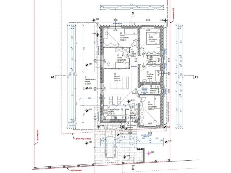 Az új építésű családi ház várhatóan 8 hónapon belül kerül átadásra, mely korszerű hő takarékos építészeti megoldásokat alkalmazva készül el. A falazata 30-as téglából épül, mely 15 cm-es EPS homlokzati hőszigetelést kap. A födém szerkezete 15 cm-es ásványszálas hőszigetelésű lesz, így az egész épület energetikai szempontból A++ kategóriájú.